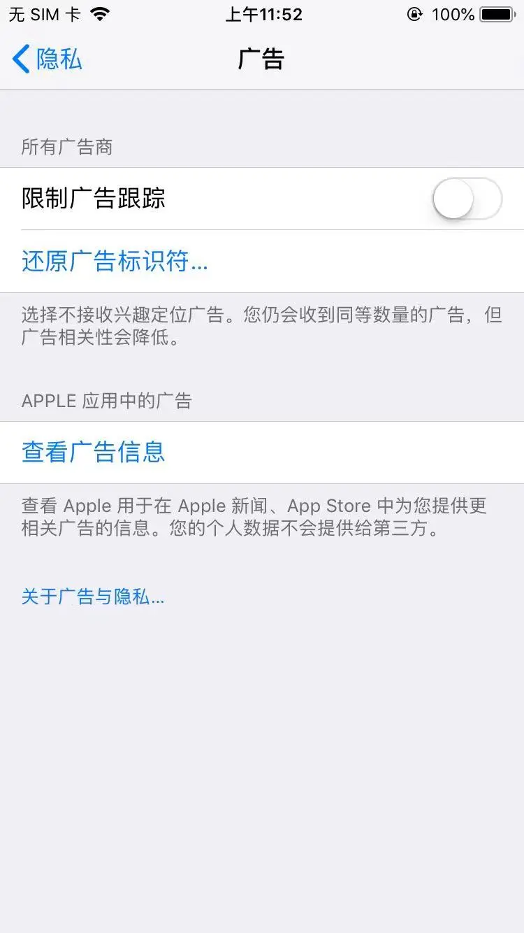 设置 - 隐私 - 广告