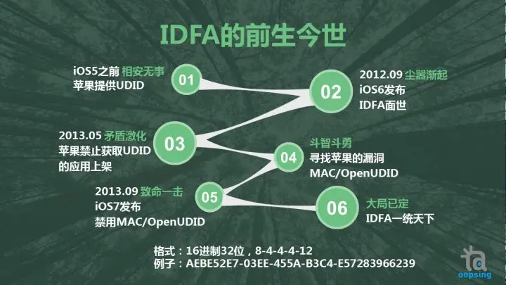 广告标识符IDFA是在2012.09年面世,为了是给开发者跟踪商家在移动端投放广告效果的。