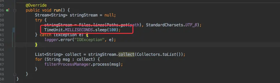 为了模拟效率的提升,每处理一个文件我都让当前线程休眠 100 毫秒来模拟执行耗时。