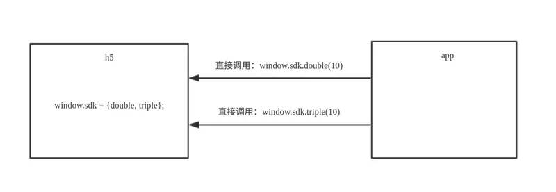 在 h5 定义好回调函数,比如 window.bridge={getDouble:value=>{},getTriple:value=>{}}