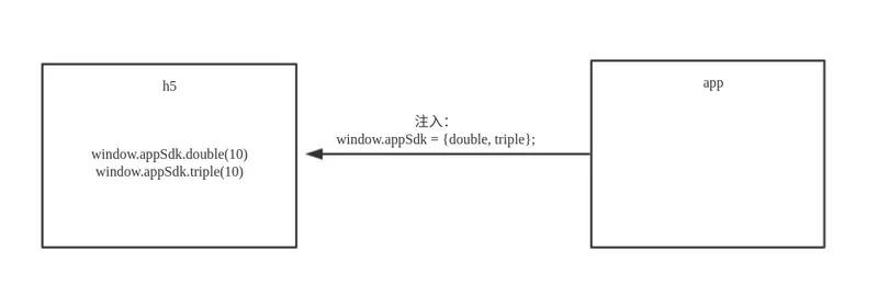 由 app 向 h5 注入一个全局 js 对象,然后在 h5 直接访问这个对象