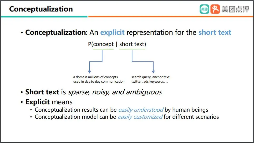 所以,这就是我们提出来的 Conceptualization Model,它是一个 Explicit Representation。我们希望它能够将 Text,尤其是 Short Text,映射到 Millions Concepts,这样的 Representation 能够比较容易让用户进行理解,同时能够应用到不同场景当中。