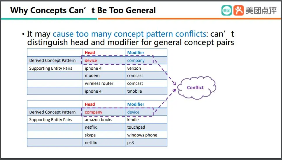 在这个过程之中,我们要将 Entity 映射到 Concept 上,那么这就是前面所提到的 Conceptualization。我们希望之后的映射不能太 General,避免 Concept Pattern 冲突。