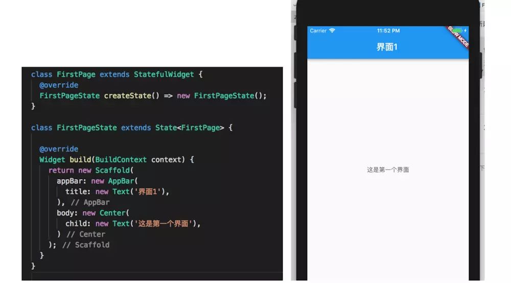 其中 scaffold是一个脚手架,可以就理解为一个html,appBar就是上面的那个titlebar,body就不用说了吧