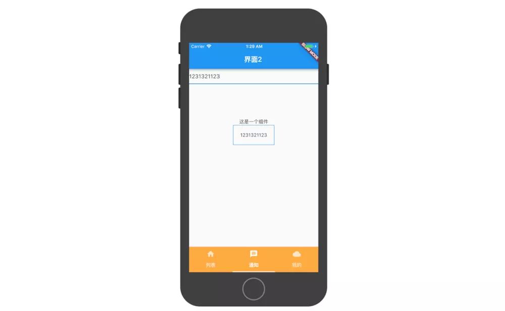 在vue, react各种流行的年代,那组件化的思想,flutter也不能丢了。那接下来我们就来实现一下组件之间的通信。那我们就在<通知>这个tab中来实现一个简单的组件化通信。直接上代码: