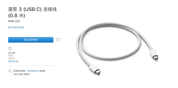 那么,如果你想要让你的 iPad Pro 输出 4K 视频,你要购买什么线呢?苹果已经非常「贴心」地为你准备好了,你可以在官网 Mac 的配件区找到一条 雷雳 3 (USB‑C) 连接线,它支持 USB 3.1 第二代数据传输 (速率最高可达 10 Gbps) 以及 DisplayPort 视频输出 (HBR3) ,官方售价 329 人民币。