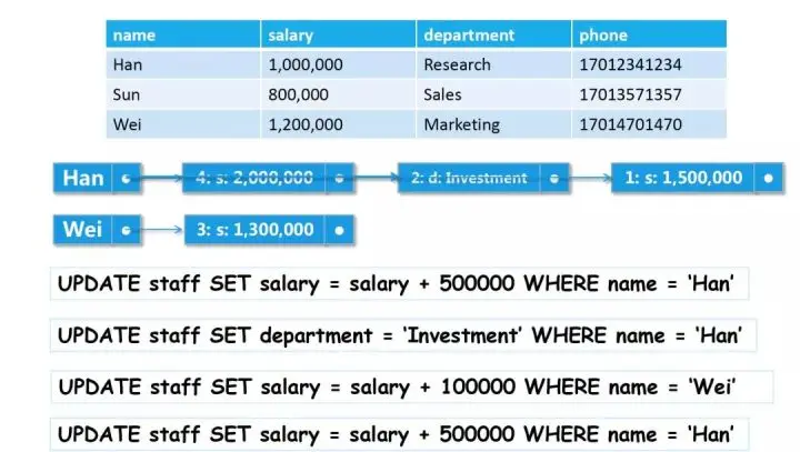说明:Han--> 4:s:2000000 表示4号事务修改行主键Han对应行的字段s值为2000000