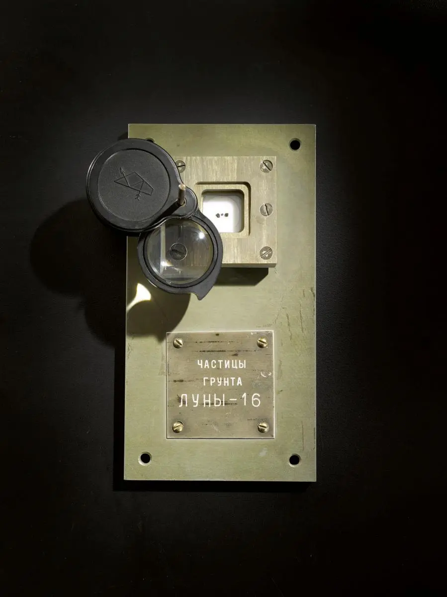 苏富比拍卖行将要拍卖的三个月球样本,据说,这是目前已知私人手中唯一的月球岩石,有着34亿年的历史。它们来自1970年返回地球的无人苏维埃Luna-16任务。在纽约拍摄的这张照片中,它们显示在可调节镜头的玻璃下面。