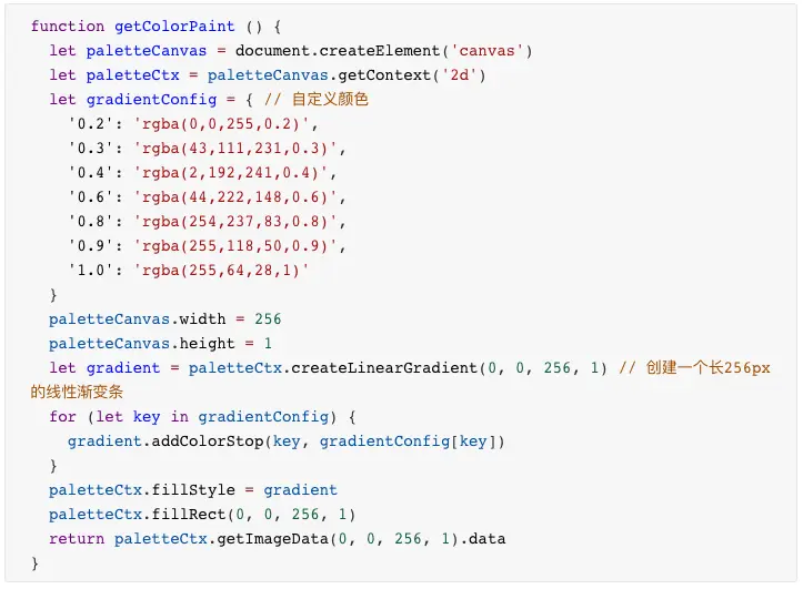 根据画布上每个像素点累计得到的灰度值,可以从彩色映射色带中得到对应位置的颜色。