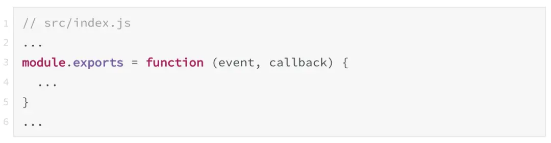 我们的 webpack 入口文件需要暴露出一个函数(签名为:function (event, callback)),打包后就可以生成一个给个跟上面一致的模块文件(在 webpack.config.js 中已经定义了)。所以我们的入口文件主要结构如下: