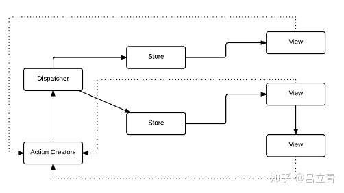 而 Flux 以及我们要学习的 Vuex 则是试图通过强制单向数据流来解决这个复杂度。在这种架构当中,Views 查询 Stores(而不是 Models),并且用户交互将会触发 Actions,Actions 则会被提交到一个集中的 Dispatcher 当中。当 Actions 被派发之后,Stores 将会随之更新自己并且通知 Views 进行修改。这些 Store 当中的修改会进一步促使 Views 查询新的数据。