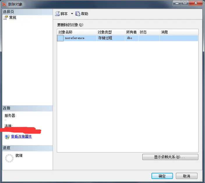 在删除任何存储过程之前,请检查依赖对象,并且相应地修改这些对象。 如果没有更新这些对象,则删除存储过程可能会导致依赖对象和脚本失败。