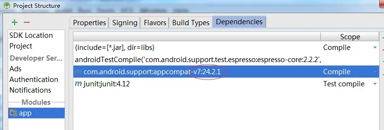 compile 'com.android.support:appcompat-v7:24.2.1'