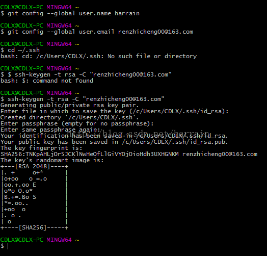 ②、生成SSH密钥过程: