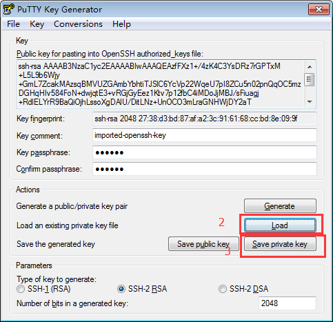 ①可以到TortoiseGit的安装路径下找到C:\ProgramFiles\TortoiseGit\bin\puttygen.exe运行此文件,点击下图中规定load加载私钥id_rsa,然后点击Save private key生成TortoiseGit需要使用的ppk文件(id_rsa.ppk)