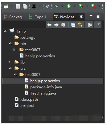 【6】 把修改好的hanlp.propertites分别拖动到src和bin文件夹下,如图