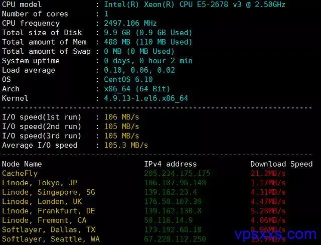 从硬件配置看到,虽然是国人商家,但是不太了解国人啊,默认没有Swap内存,硬盘也马上跌到两位数,硬盘表现真差,国外测试点速度也比较惨,看下国内下载速度吧: