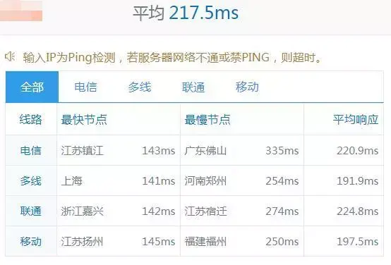 已懵,电信移动速度非常快,基本都在50M以上了,就是联通测试点怎么回事,一点速度都没有?再看一下国内ping值如何: