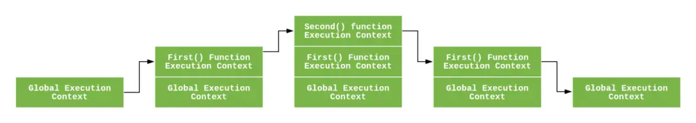 当first()执行完毕,重复以上步骤。一旦执行了所有代码,JavaScript引擎就会从当前堆栈中删除全局执行上下文。