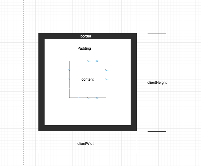 - clientHeight 和 clientWidth 用于描述元素内尺寸,是指元素内容+内边距大小,不包括边框(IE下实际包括)、外边距、滚动条部分