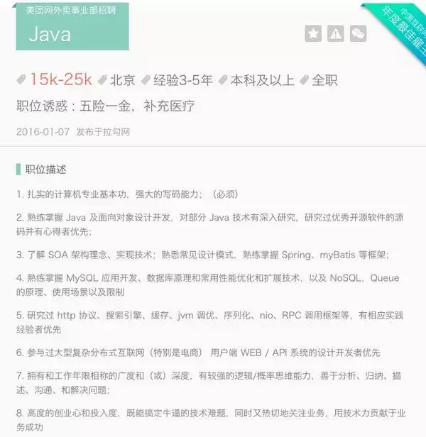 你看,也不是很难嘛。如果上面的几点你都做到了,还拿不到2w的美团高级JAVA开发工程师的offer,那美团肯定是冻结了headcount。