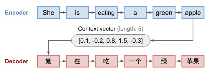 - Encoder 负责处理输入,并将输入的信息进行 encode,转化成一个固定长度的 context 向量,这个 context 向量包含了整个输入的信息。