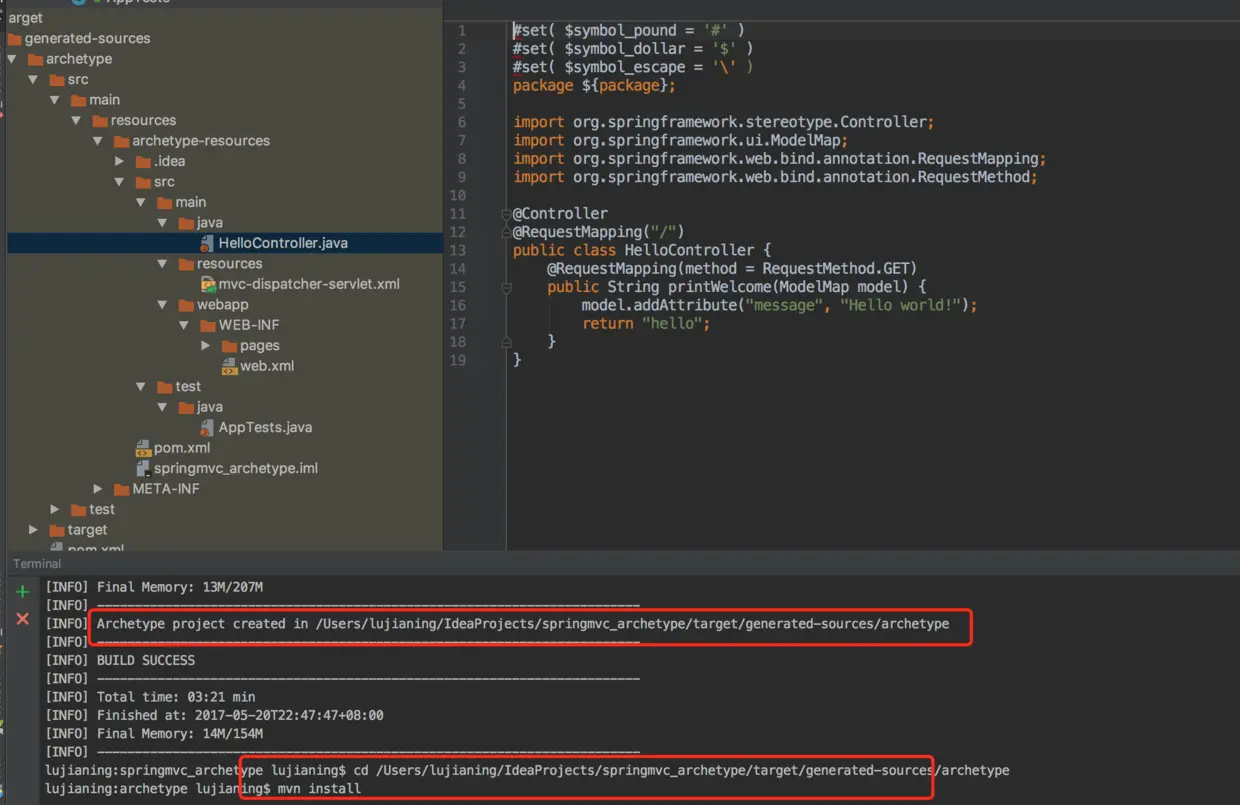 2.cd target/generated-sources/archetype后,mvn install安装archetype project到本地仓库