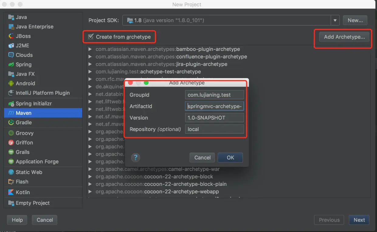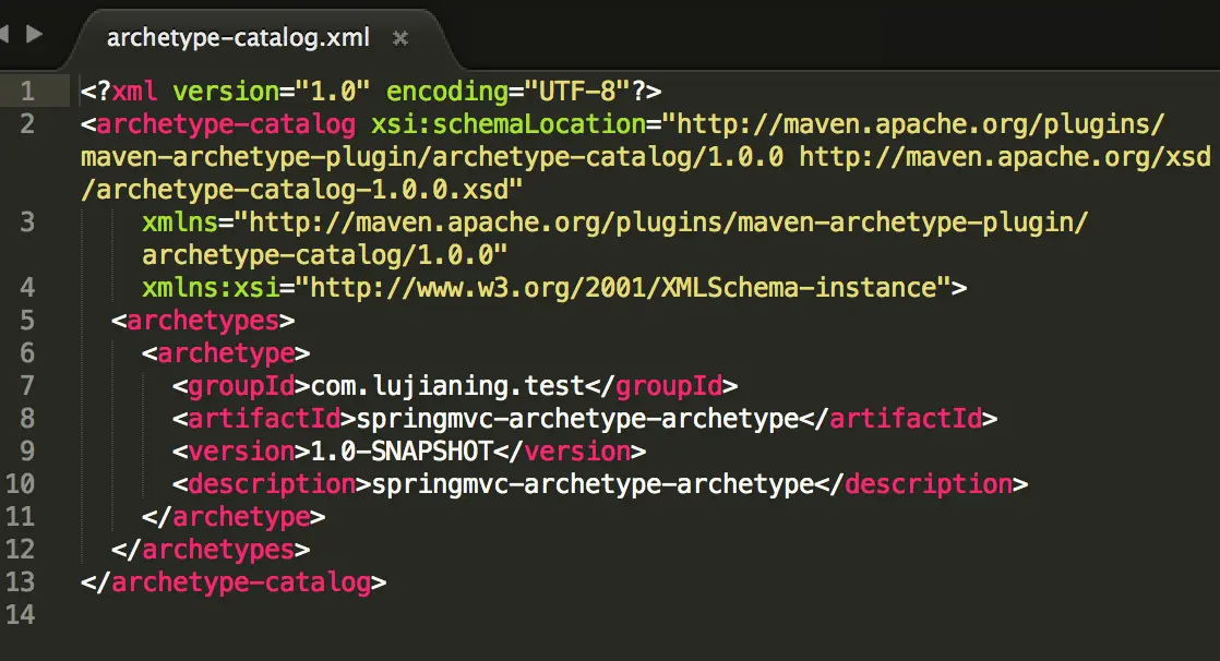 对应的本地archetype列表,在本地maven仓库的archetype-catalog.xml中,比如:~/.m2/repository/archetype-catalog.xml