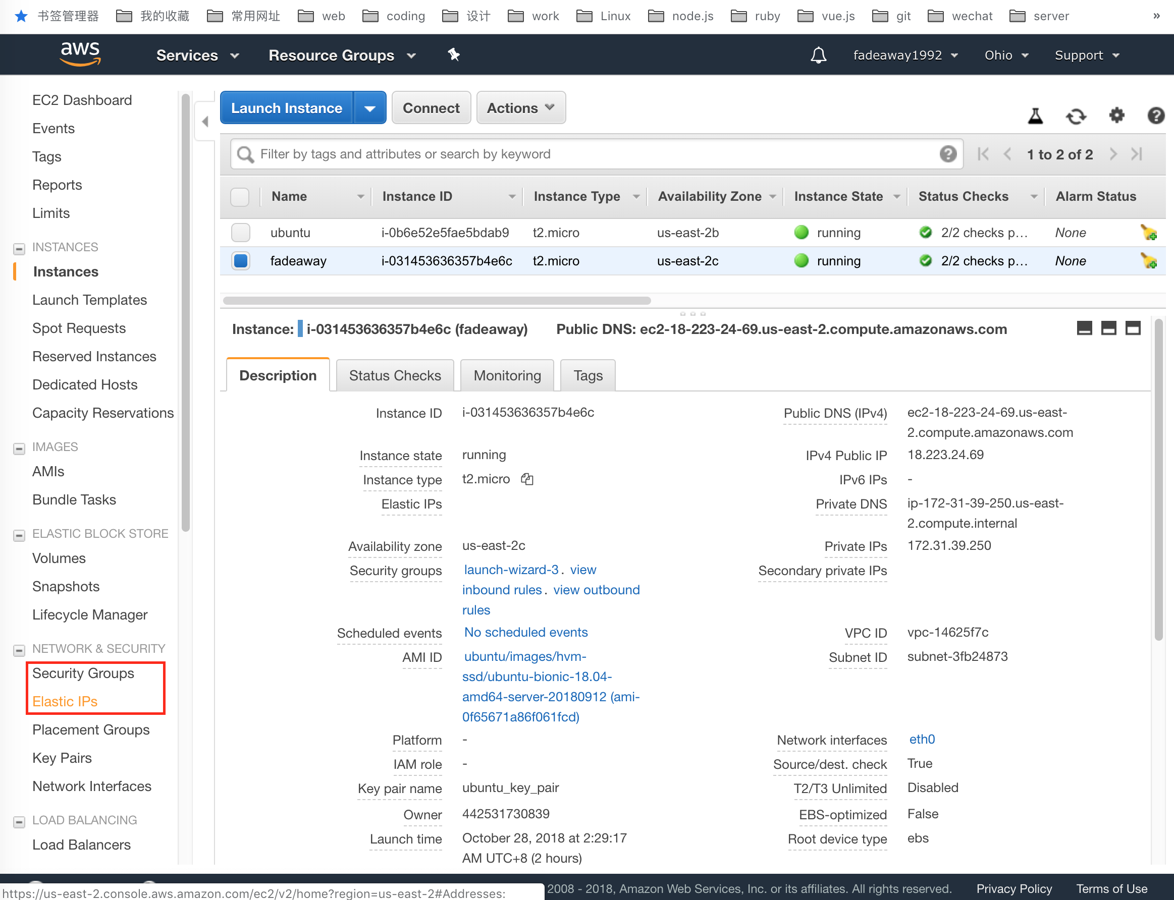首先进入到 EC2 的控制台,可以看到我们正在运行的实例。