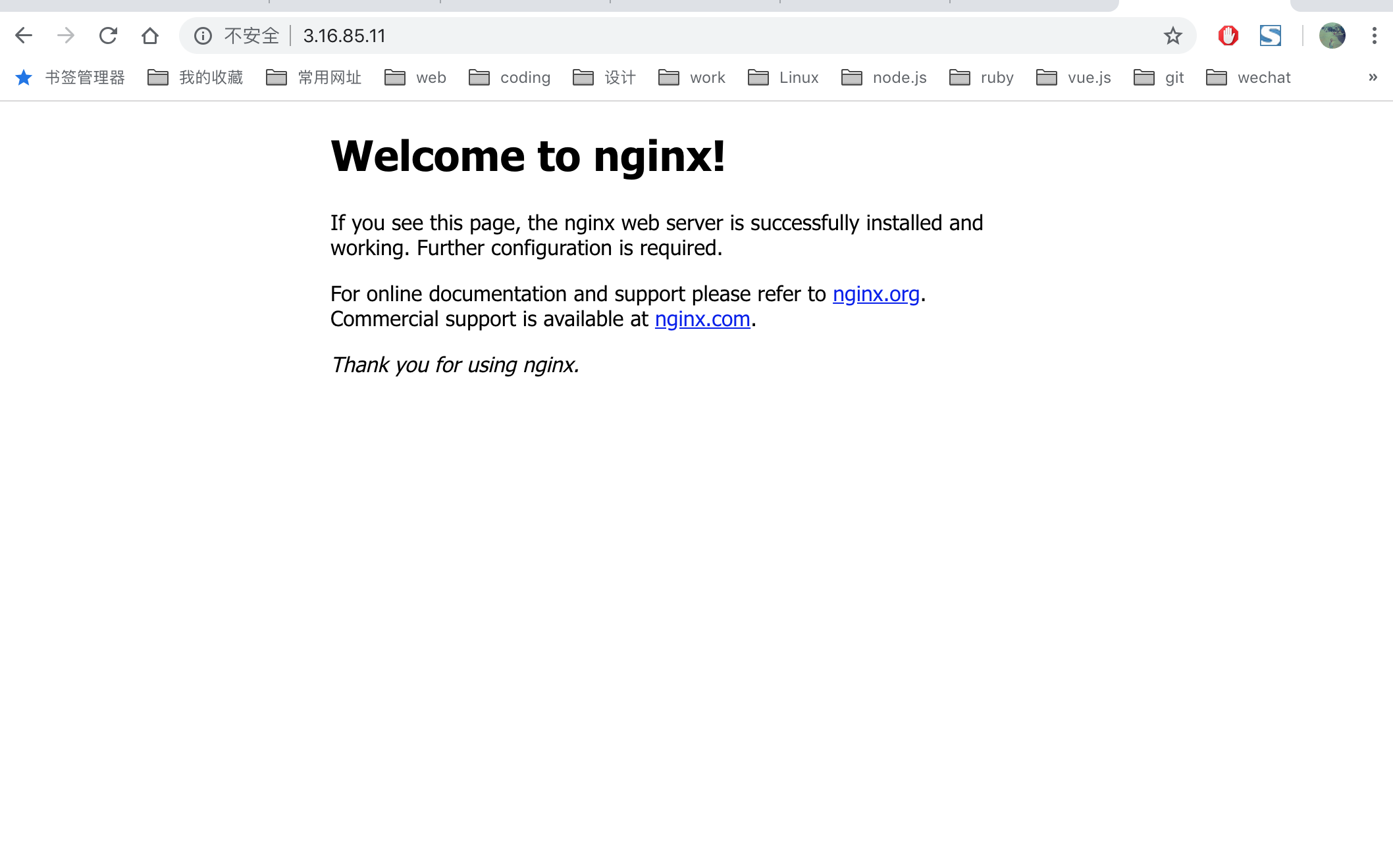 完成上面的操作后,在浏览器中访问我们的静态 IP,可以看到下面的页面。