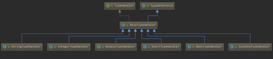 在 Mybatis 中,提供了 TypeHandler 接口的唯一实现,即 BaseTypeHandler ,主要是为了方便用户的自定义实现 TypeHandler 接口。