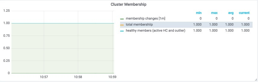 static_resources: listeners: - name: listener_0 address: socket_address: { address: 0.0.0.0, port_value: 10000} filter_chains: - filters: - name: envoy.http_connection_manager config: stat_prefix: ingress_http codec_type: AUTO route_config: name: remote_api virtual_hosts: - name: api domains: - "*" routes: - match: prefix: "/" route: cluster: api http_filters: - name: envoy.router clusters: - name: api connect_timeout: 1s type: strict_dns lb_policy: round_robin hosts: - socket_address: address: localhost port_value: 8080admin: access_log_path: "/dev/null" address: socket_address: address: 0.0.0.0 port_value: 9901更新负载测试工具的参数,直接访问本地的 Envoy 代理,通过仪表板可以观察到 Envoy 正在接收流量。下图的 Envoy 仪表板来自 Grafana 官方仪表板仓库(Lyft 也提供了一份 Envoy 仪表板)。