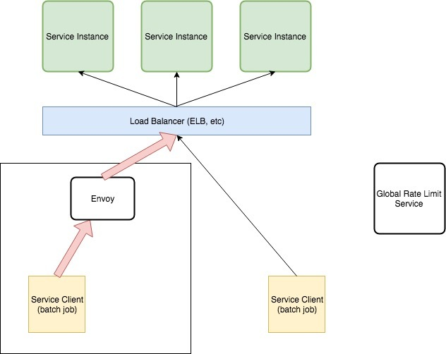通过将 Envoy 作为 Sidecar 与批处理客户端一起运行,在请求达到负载均衡之前就可以对请求进行速率限制。使用 Envoy 是一个很明智的选择,因为它具有高度可配置性,高性能,并且可以很好地处理 HTTP 请求之间的平衡。