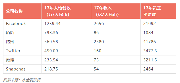 图:社交领域互联网公司员工创收情况表