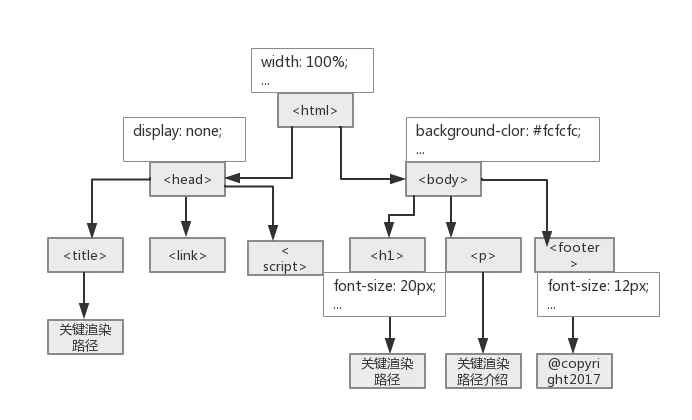 渲染树:按顺序展示在屏幕上的一系列矩形,这些矩形带有字体、颜色和尺寸等视觉属性。