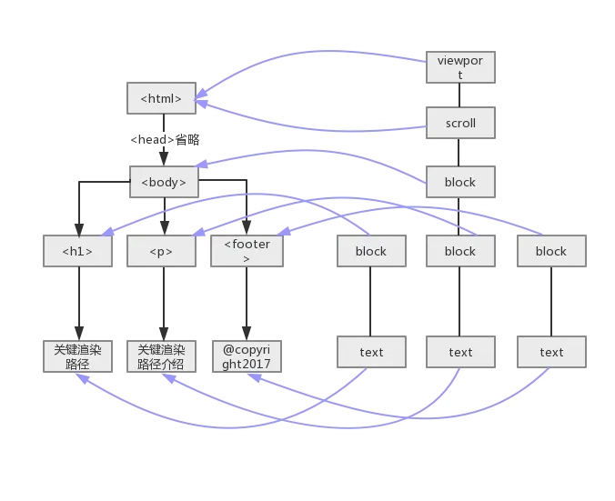 - 图中渲染树viewport即视口,是文档的初始包含块,scroll代表滚动区域,详见CSS之视觉格式化模型(Visual Formatting Model)
