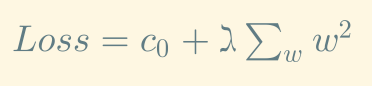 此处插播一条说明,上面的 Loss 函数式由两个部分组成,c0部分就是传统的损失函数,称为 “经验风险”;后面的正则项称为 “结构风险”,它有点从结构上约束前半部分 “经验风险” 的意思。