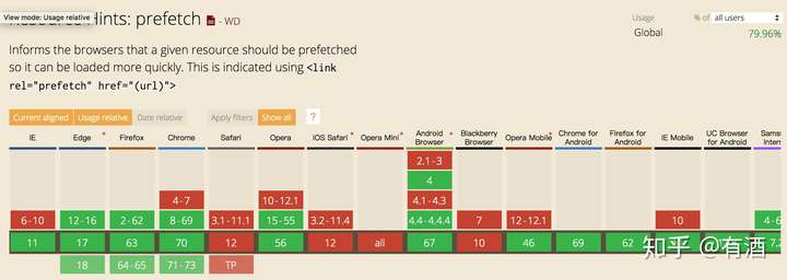 讲完用法再讲浏览器兼容性,prefetch 比 preload 的兼容性更好,覆盖面可以达到将近 80%。