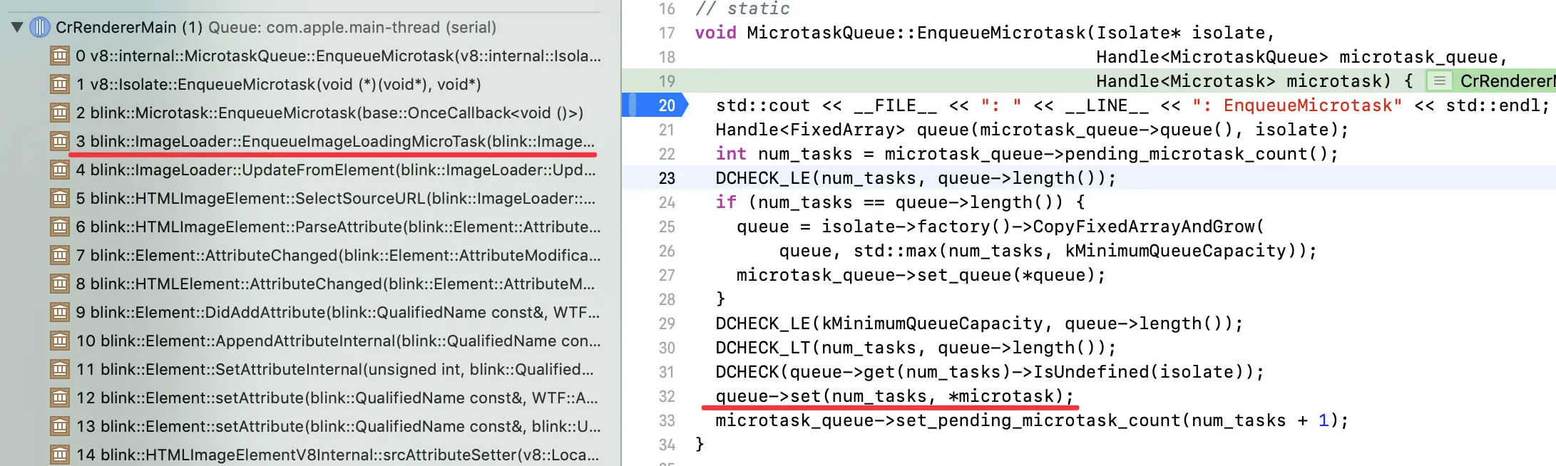 console.log(Object.keys({e: 1}));我们经常会有困扰,onload是不是应该写在src赋值的前面,避免src加上之后触发了请求,但onload那一行还没执行到。实际上我们可以不用担心,因为执行到src赋值之后,blink会创建一个微观任务,推到微观队列里面,如下代码所示: