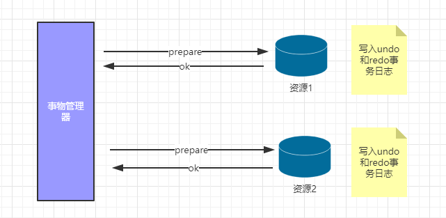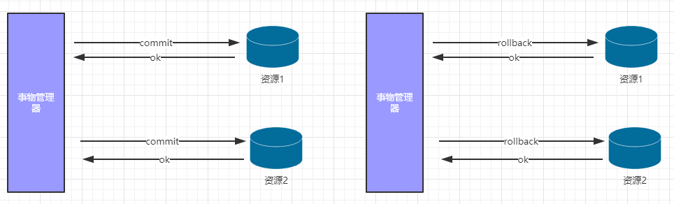 阶段1:是否提交-询问是否可以做事务提交阶段2:预先提交-预先提交事务阶段3:执行事务提交(commit、rollback)真正的提交事务