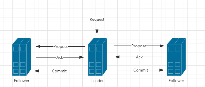 a.Leader接受请求后,将这个请求赋予全局的唯一64位自增Id(zxid)。b.将zxid作为议案发给所有follower。c.所有的follower接受到议案后,想将议案写入硬盘后,马上回复Leader一个ACK(OK)。d.当Leader接受到合法数量(过半)Acks,Leader给所有follower发送commit命令。e.follower执行commit命令。注意:到了这个阶段,ZK集群才正式对外提供服务,并且Leader可以进行消息广播,如果有新节点加入,还需要进行同步。