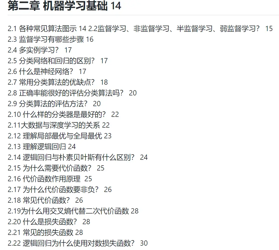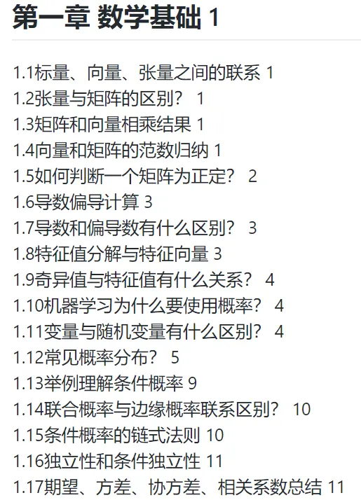 每一章都包含很多问题,下面给出其中部分章节的部分目录: