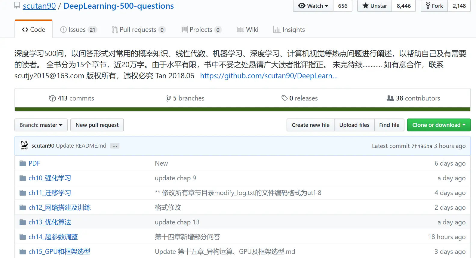 所以目前它已经有 8446 个 Star,而 Fork 的人数也有 2148 个。这是一份无论是刚入门或者是已经入门,并继续进阶的进行查漏补缺的知识教程。