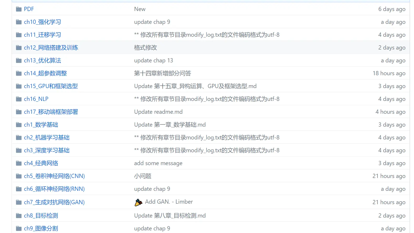 它目前是有 16 个章节,包含了数学基础、机器学习、深度学习、CNN、RNN、计算机视觉等,以及最新添加的 NLP,即自然语言处理方面的知识总结,如下图所示: