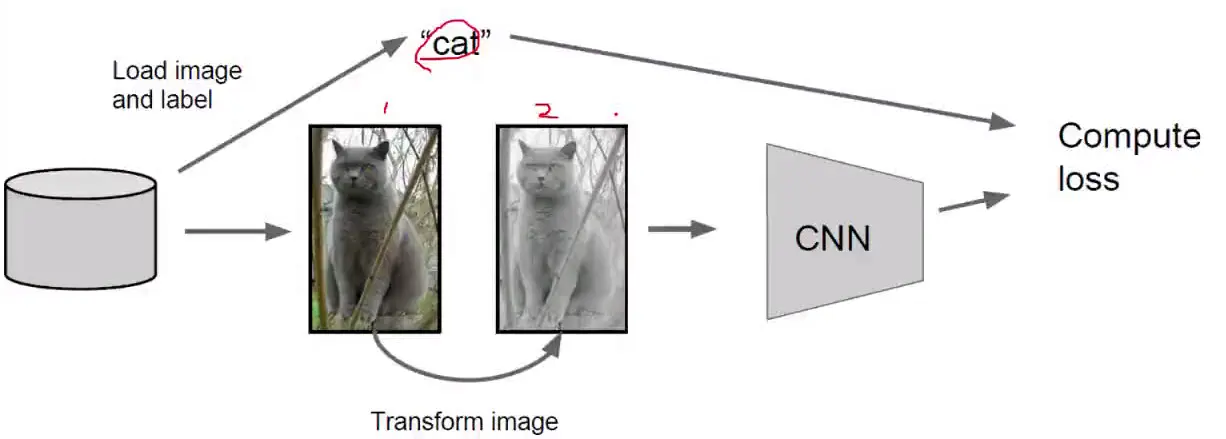 事先对图像数据进行处理。比如有10万的数据,现在对这些数据都进行一次变换,那么就有了20万数据。