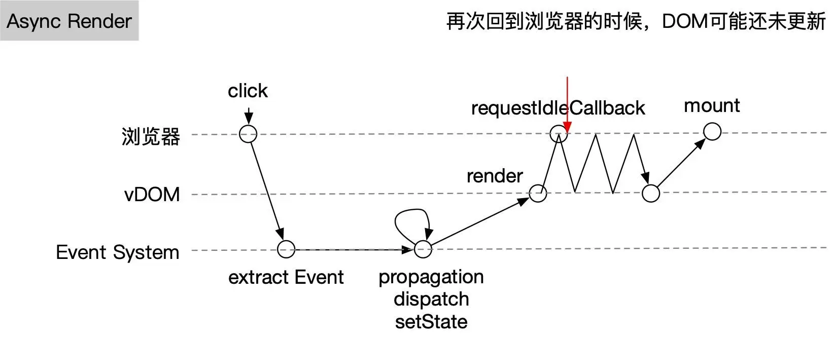 异步渲染的流程图大概如下图所示,最近一次思考这个问题的时候,发现如果现在是异步渲染的话,那我们的例子二将变成偶现的坑😂,因为如果setState