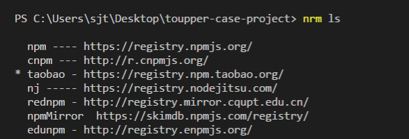 安装好后使用nrm ls命令会显示如下:
