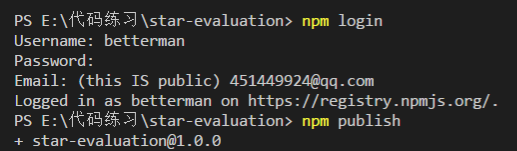 打包完成后运行npm login登录后npm publish发布: