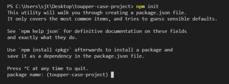 "name": "toupper-case-project", // 包名称,默认和你文件夹同名,可改,但是需要去npm官网搜素这个名称是否已存在,因为包名不能重复