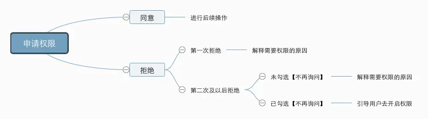 - APP申请指定权限时被用户拒绝,但未勾选【不再提示】,返回true
